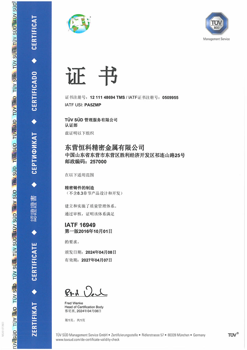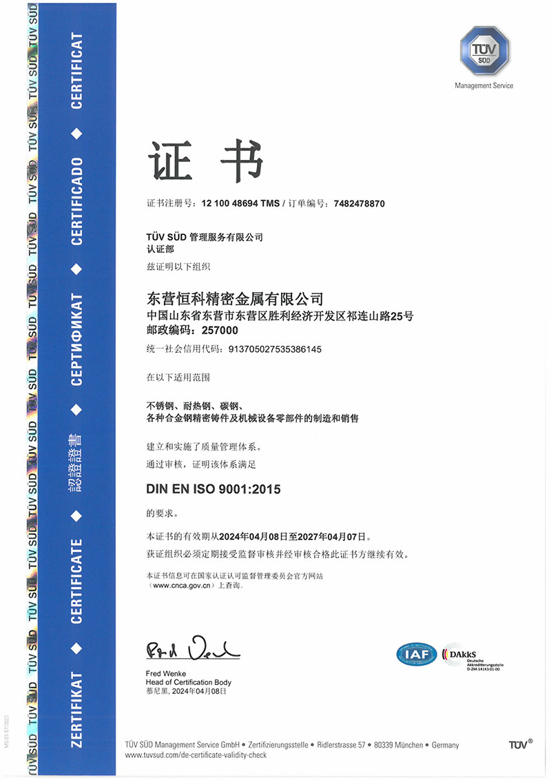 東營恒科精密金屬有限公司,成立于1988年,座落于山東省東營市勝利經濟開發(fā)區(qū),注冊資本1000萬元,占地48000平方米,建筑面積30000平方米。公司現有員工300余人,其中技術人員50余人。