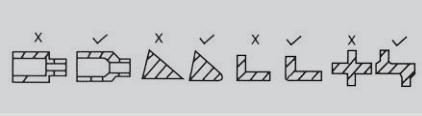 鑄件結構應避免急劇變化,盡可能避免尖角,圓角應達到RO.3以上 | ![]() | ||